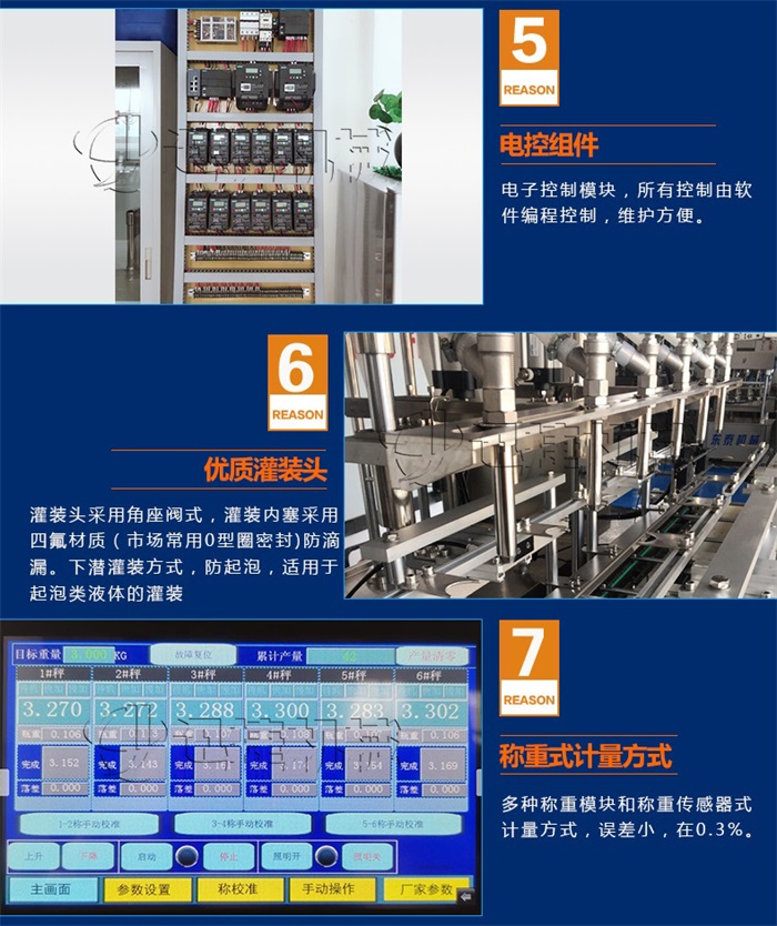機適用于對流體5kg-30kg的計重量灌裝。自動完成計數(shù)進瓶、計重量灌裝、輸送出瓶等一系列操作。 特別適用于水劑、食用油,潤滑油的定量灌裝,是食品,醫(yī)藥,化妝品以及精細化工等行業(yè)的包裝機。本機采用可編程控制器(PLC)、高速工控組態(tài)軟件進行實時監(jiān)控的控制,使用調(diào)節(jié)方便。整機按GMP標準要求制作,各管路連接采用快裝方式,拆卸清洗方便,與物料接觸部位及外露部位均采用優(yōu)質(zhì)不銹鋼制造。整機安全、環(huán)保、安全、美觀、能適應各種不同環(huán)境工作。