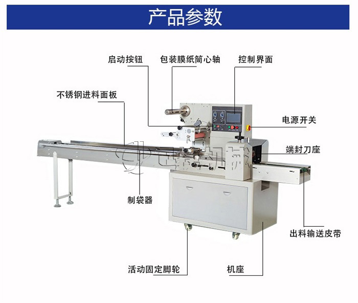 該包裝機(jī)為全自動(dòng)枕式包裝機(jī),適用于各種固型產(chǎn)品的包裝,如食品類(方便面、面包、漢堡、餅干、雪糕、冷凍食品),日用品(肥皂、餐巾紙),五金配件,機(jī)械零件(軸承),橡膠制品(輪胎)等產(chǎn)品的枕式包裝。