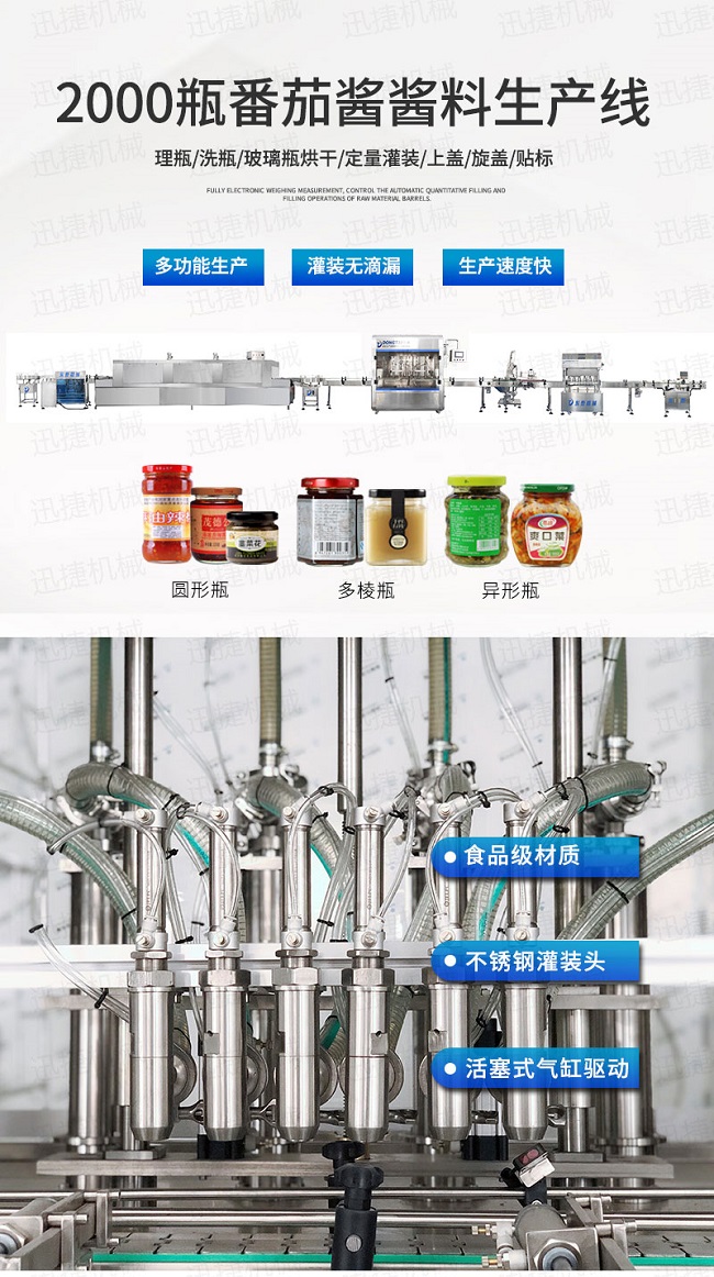 自動化醬料灌裝旋蓋貼標生產線優(yōu)勢: