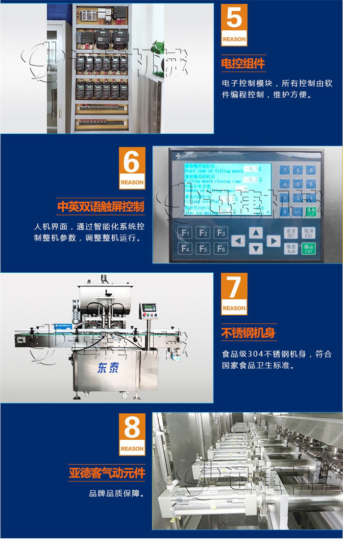 該系列灌裝機(jī)采用活塞式氣缸氣動(dòng)原理,適用于調(diào)味品中帶顆粒并且濃度較大的香菇醬、辣椒醬、豆瓣醬、花生醬、芝麻醬、果醬、牛油火鍋底料、紅油火鍋底料等較為粘稠醬類的灌裝。灌裝轉(zhuǎn)閥可以很具客戶物料定做加大,以適應(yīng)不同客戶物料的灌裝需求。
