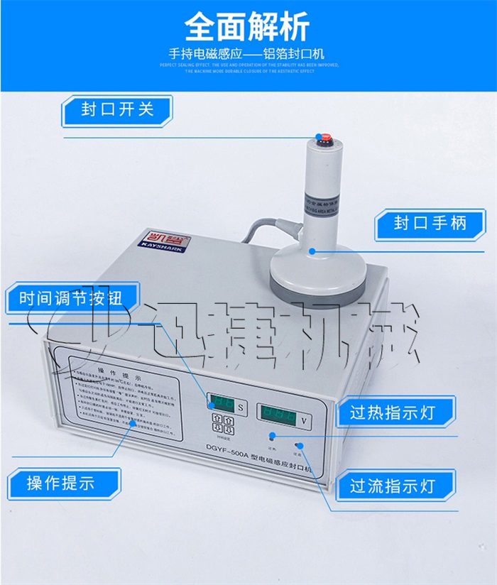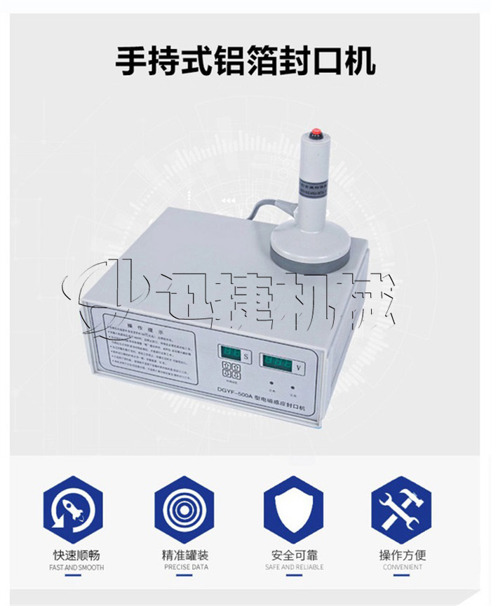 該該封口機為手持式鋁箔封口機,是一種便攜式電磁感應加熱封口設備,專為制藥、化工、農(nóng)藥、食品、化妝品、輕工行業(yè)對容器進行鋁箔嚴密封口,封口材質(zhì)使用廣泛。