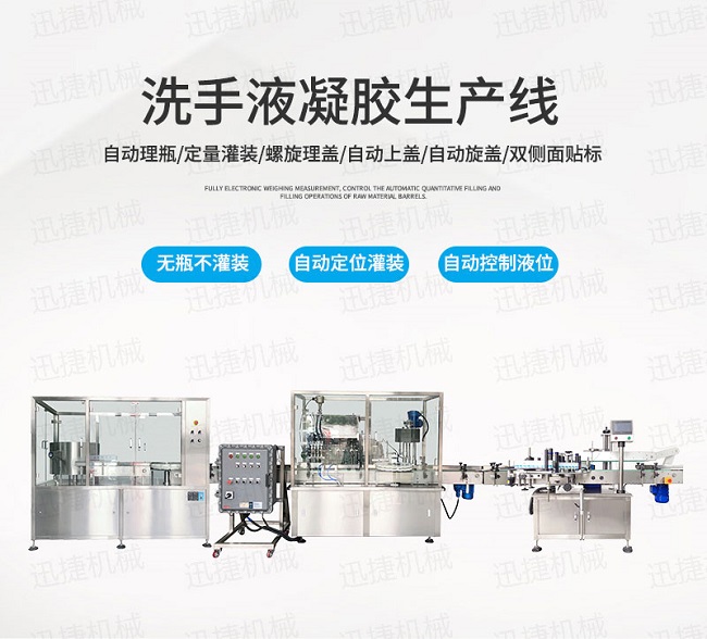我們的雙手需要接觸的物品是在太多,在我們不能確定手是否清潔時要避免用手接觸口鼻和眼睛,這樣做還是有好處的,大大降低了病毒入侵我們的身體。洗手是相當有必要的,其使用免洗手消毒液洗手那更是萬全之策,然而我們迅捷機械研發(fā)生產(chǎn)出免洗手消毒液灌裝生產(chǎn)線,自動化消毒液灌裝生產(chǎn)線是為市場對年洗手消毒液的需求而研發(fā)誕生的,該設備自動化程度高,性能穩(wěn)定,生產(chǎn)速度快,灌裝準確,操作簡單、調(diào)整方便,適應性強等特點,免洗手消毒液灌裝生產(chǎn)線是相關行業(yè)必備的現(xiàn)代化灌裝機械設備。